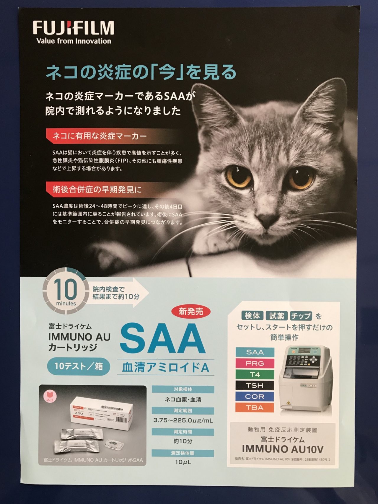 他にも当院では、甲状腺ホルモン、コルチゾールホルモン、総胆汁酸、SAAなども院内で測定可能です。
