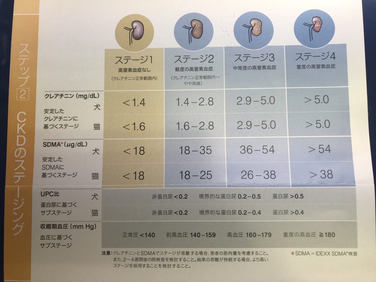 SDMA, UPC、CRE、血圧を総合的判断してIRIS(アイリス)が提唱するステージ1~4に分類されステージによって治療法が変わります。