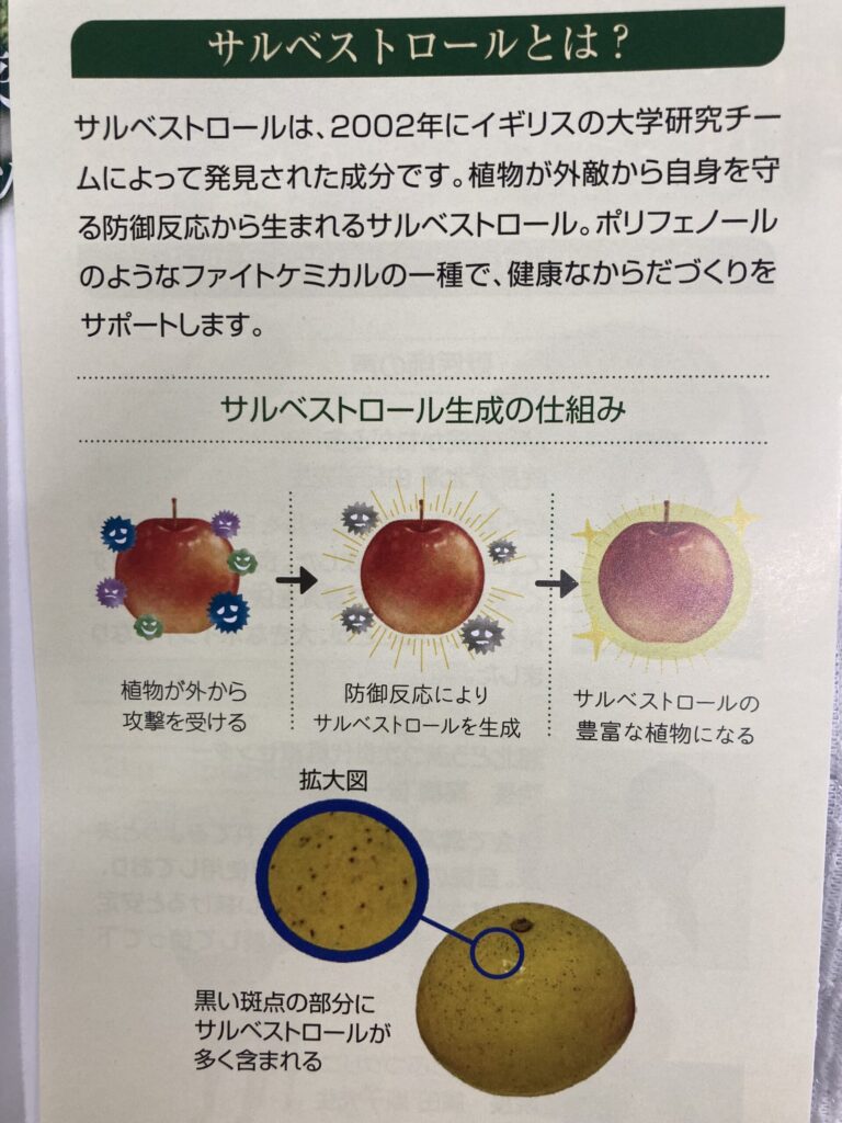 しかし現代の野菜、果物は農薬によって体が守られているため、サルベストロールを作る必要がなくなり含有量が減少していると言われています。