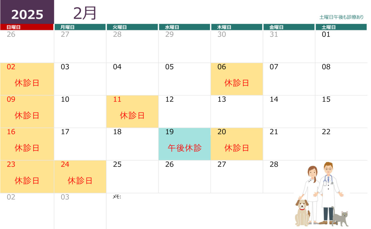 2月の診療日のお知らせ