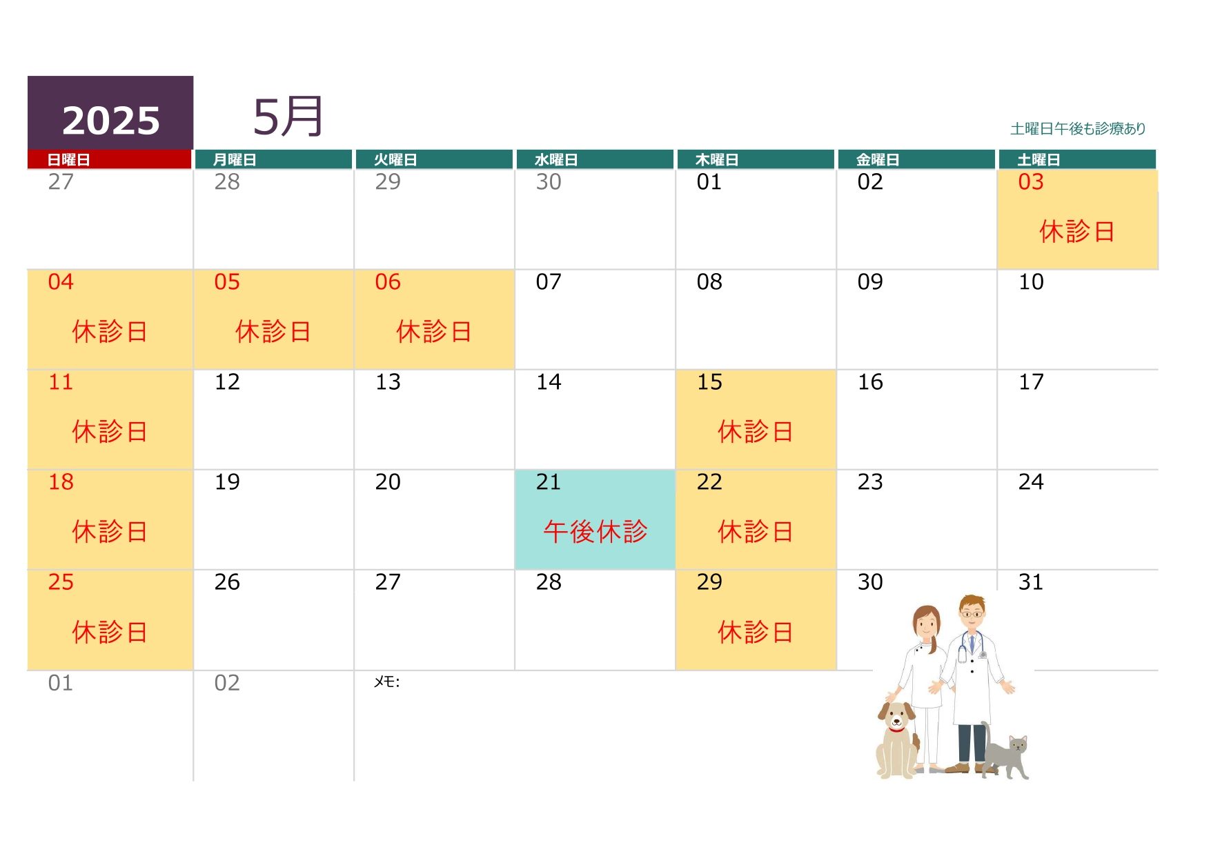 5月の診療日のお知らせ