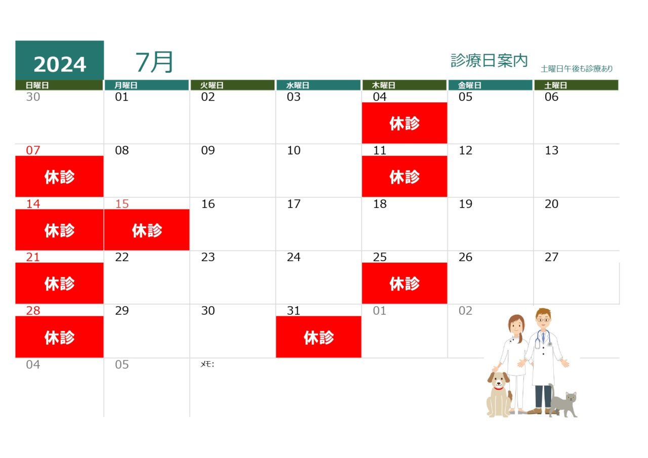 7月の診療日のお知らせ